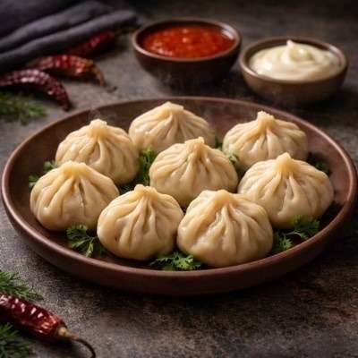 Momo stuffed with freshly chopped vegetables ( carrot, cabbage, corn), herbs, and a pinch of spices.